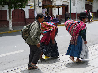 Assistimos aqui a um "paro" (greve) nacional, que teve um dos seus pontos fortes em Cusco, e que incluiu uma manifestação de rua e uma parada policial algo amedrontadora, à mistura com turistas e mulheres a vender lãs e mantas. Os trabalhadores (entre os quais os docentes universitários que aliás vão iniciar dia 15 uma greve por tempo ilimitado), só foram desmobilizados por uma chuva torrencial.