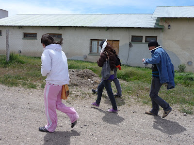 Mais uma entrevista em directo, desta vez a estudante de psicologia e " cable a tierra" Belém Ponce ( na foto, na margem do rio em El Bolson, a jovem da direita)